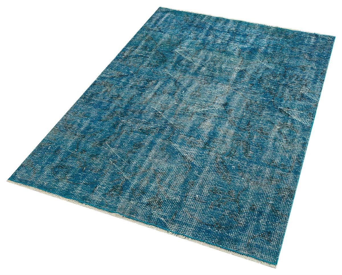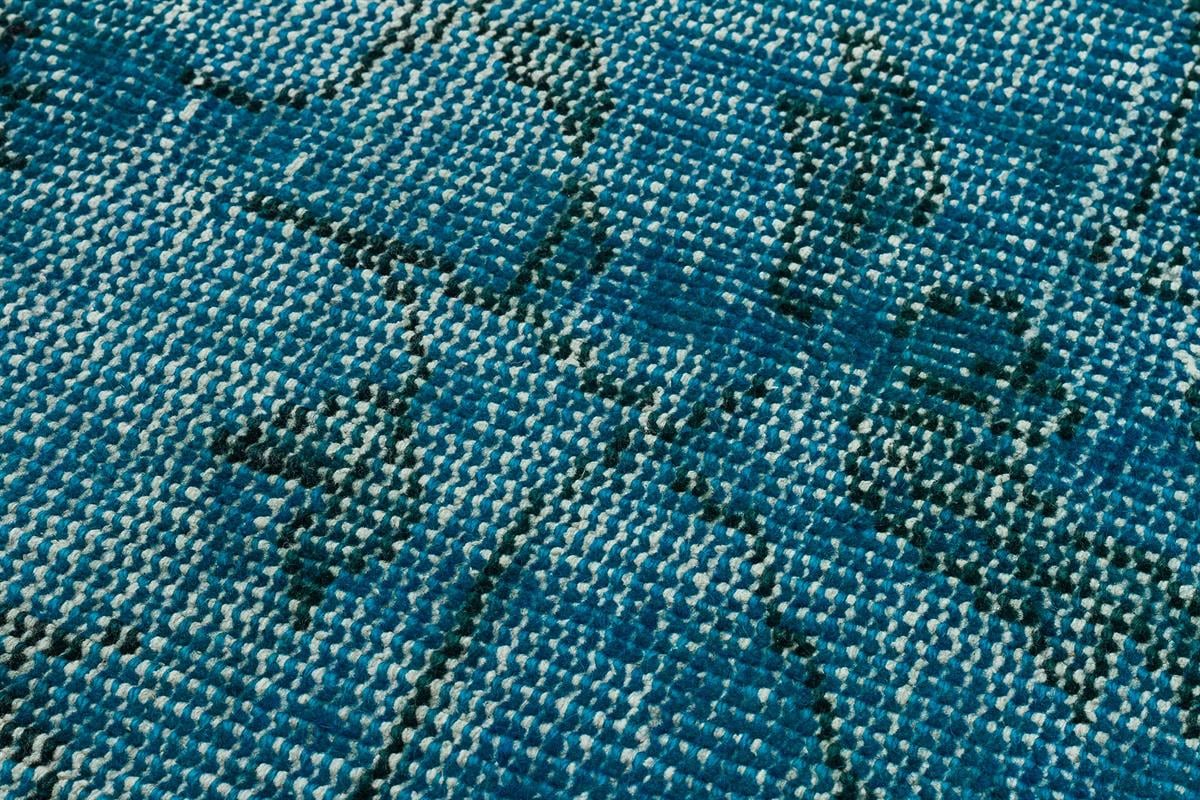 GERÇEK EL DOKUMA SİYAH RENGİ ÇİÇEKLİ TURKUAZ VİNTAGE HALISI (VN-11168)