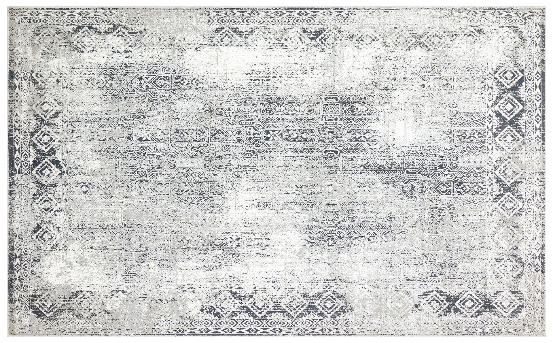 GREY BLACK XW Yumuşak İpeksi Tuşeli Yüksek Alçak Oymalı Modern İnce Makine Halısı (VR-08)