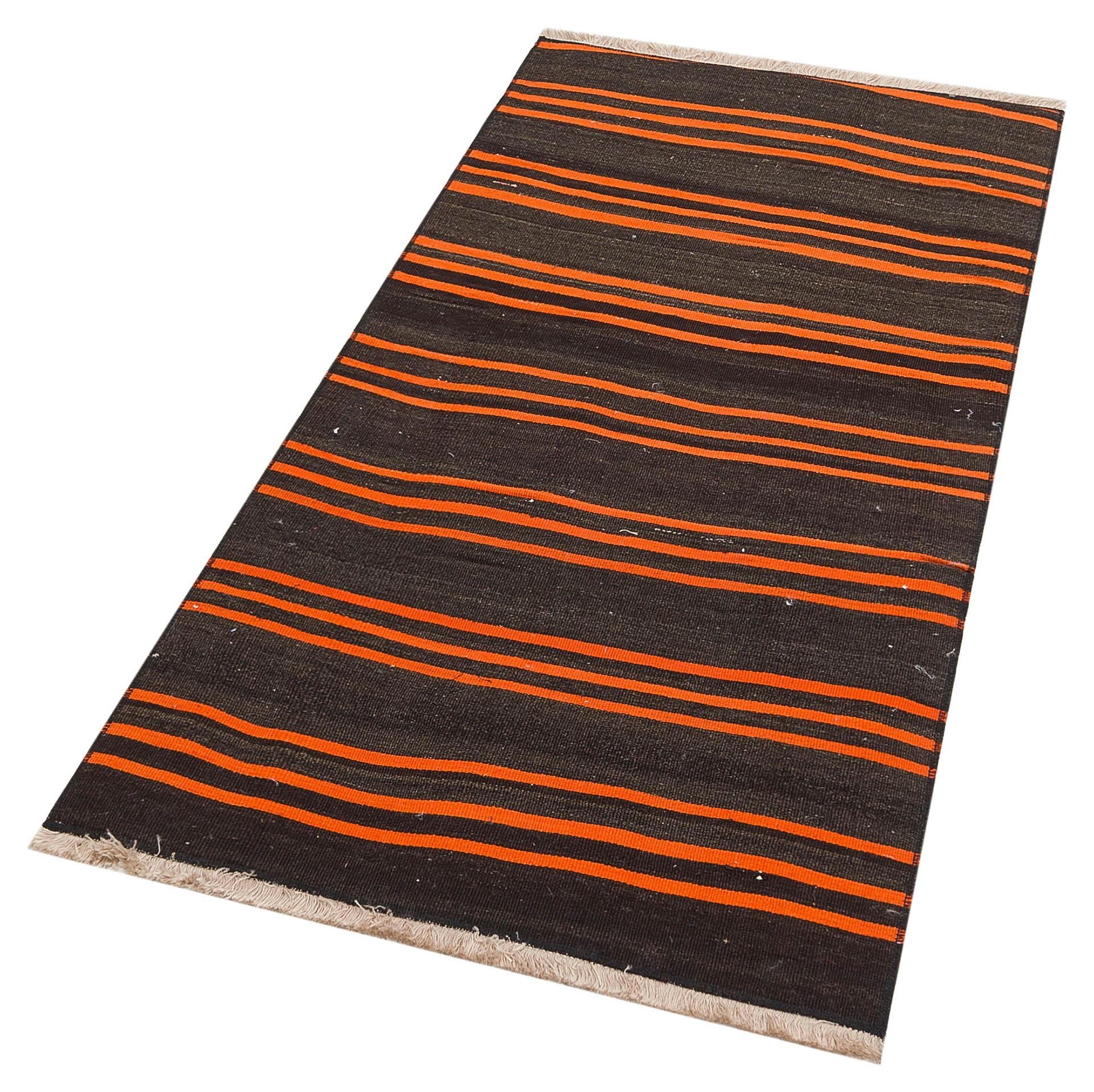 KAHVERENGİ TURUNCU RENGİ ÇİZGİLİ DESEN KEÇİ KİLİM (KL-11794)