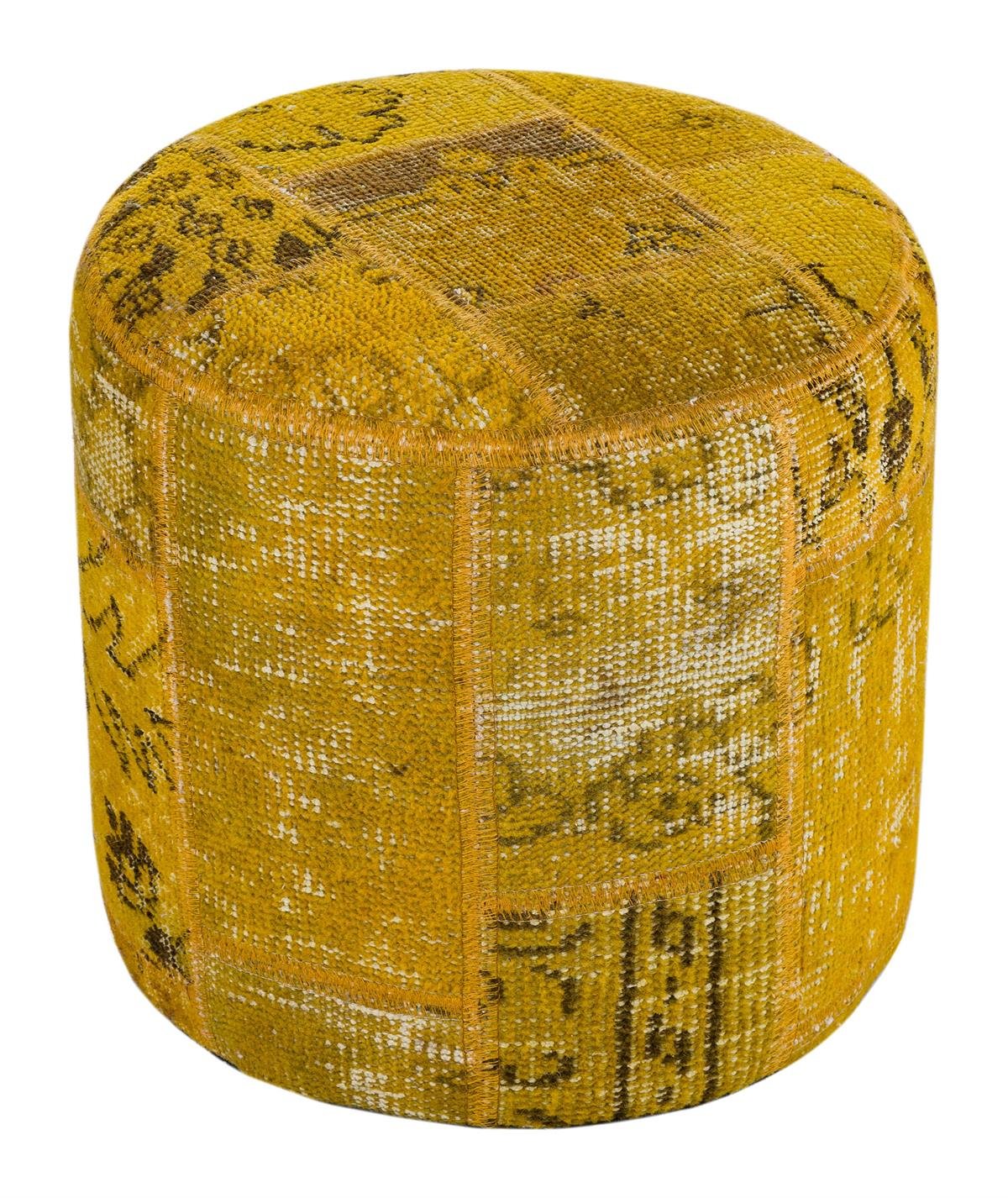 SARI RENGİ EL DOKUMA YUVARLAK PATCHWORK PUF (PF-6098)