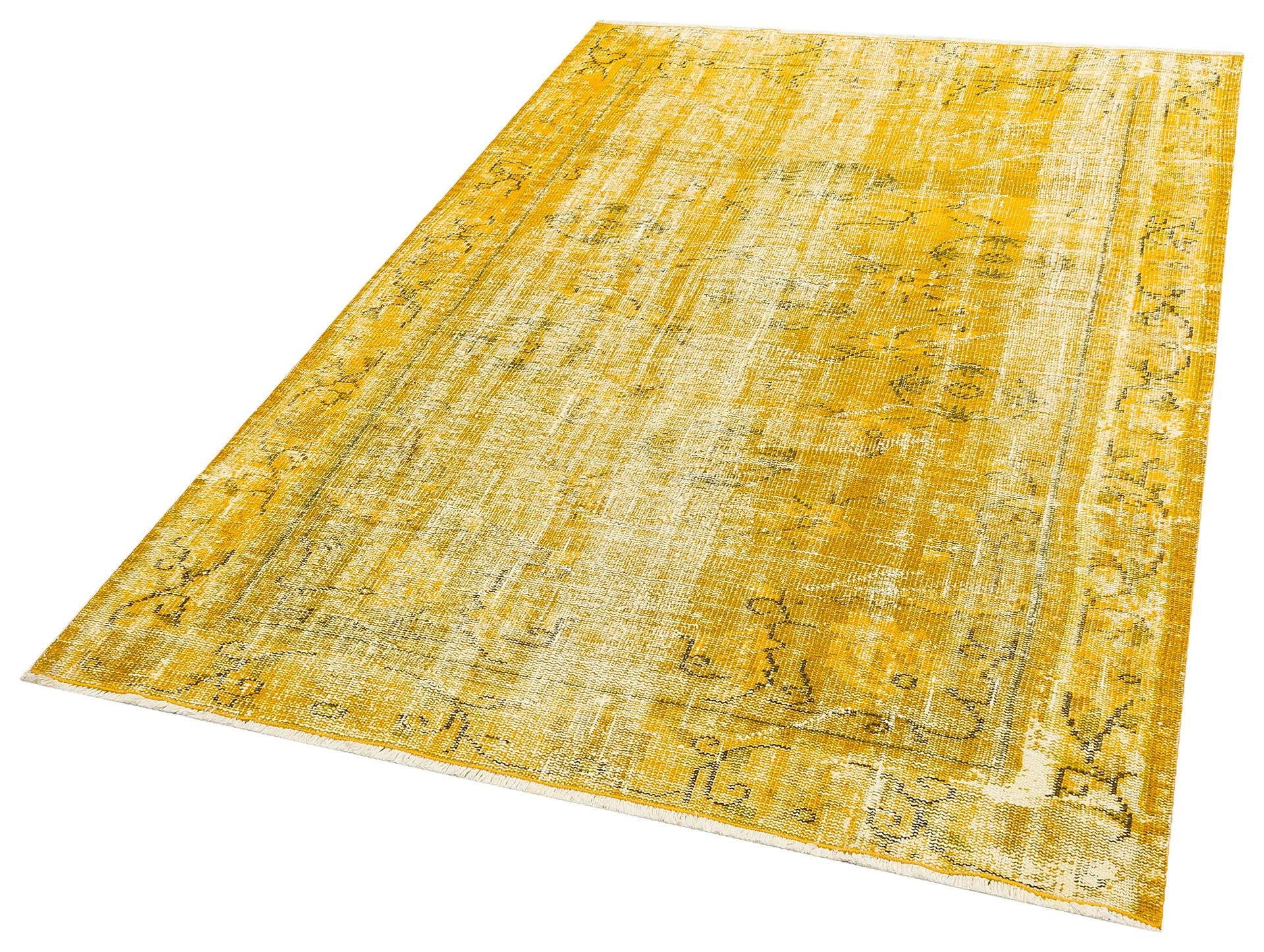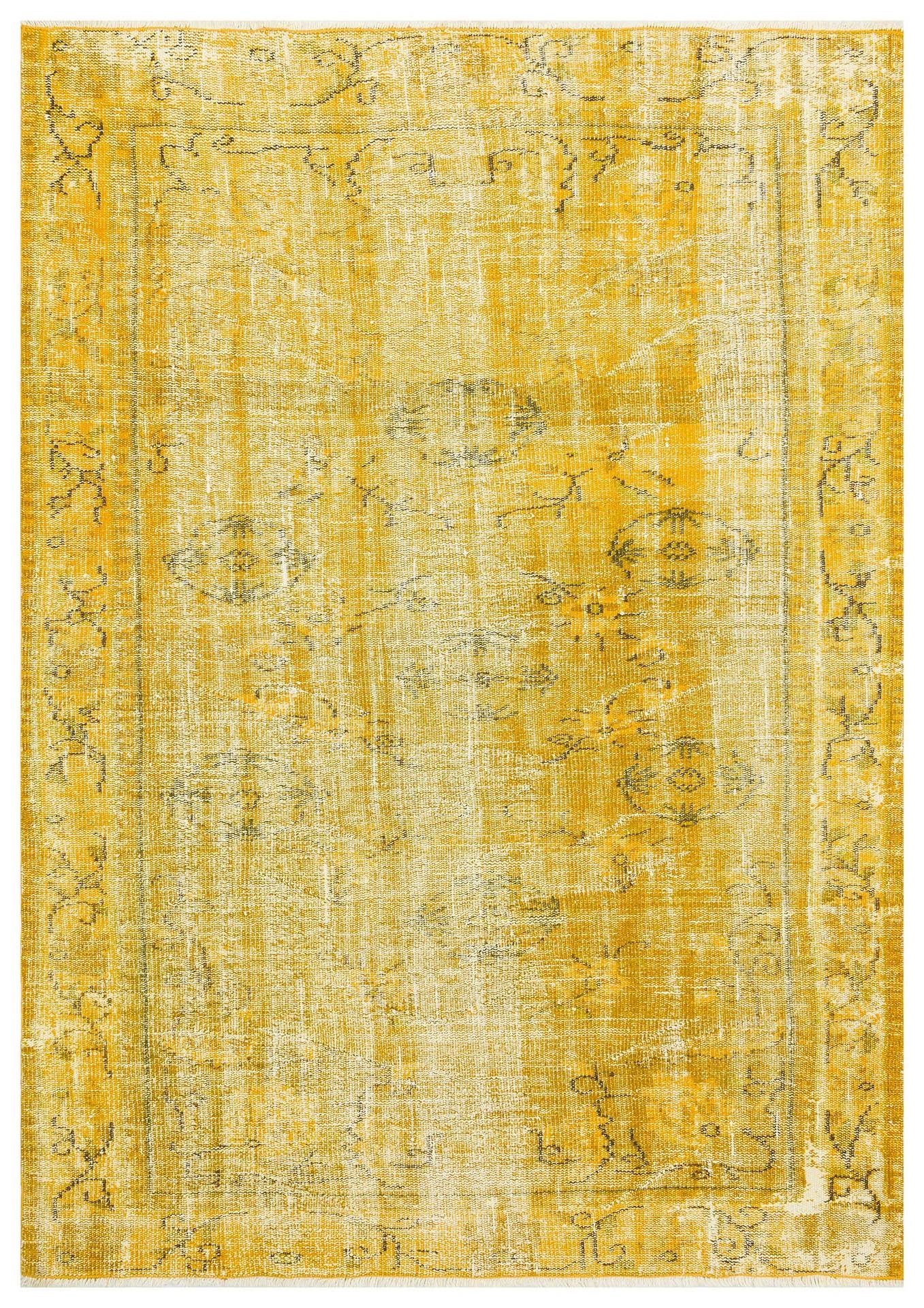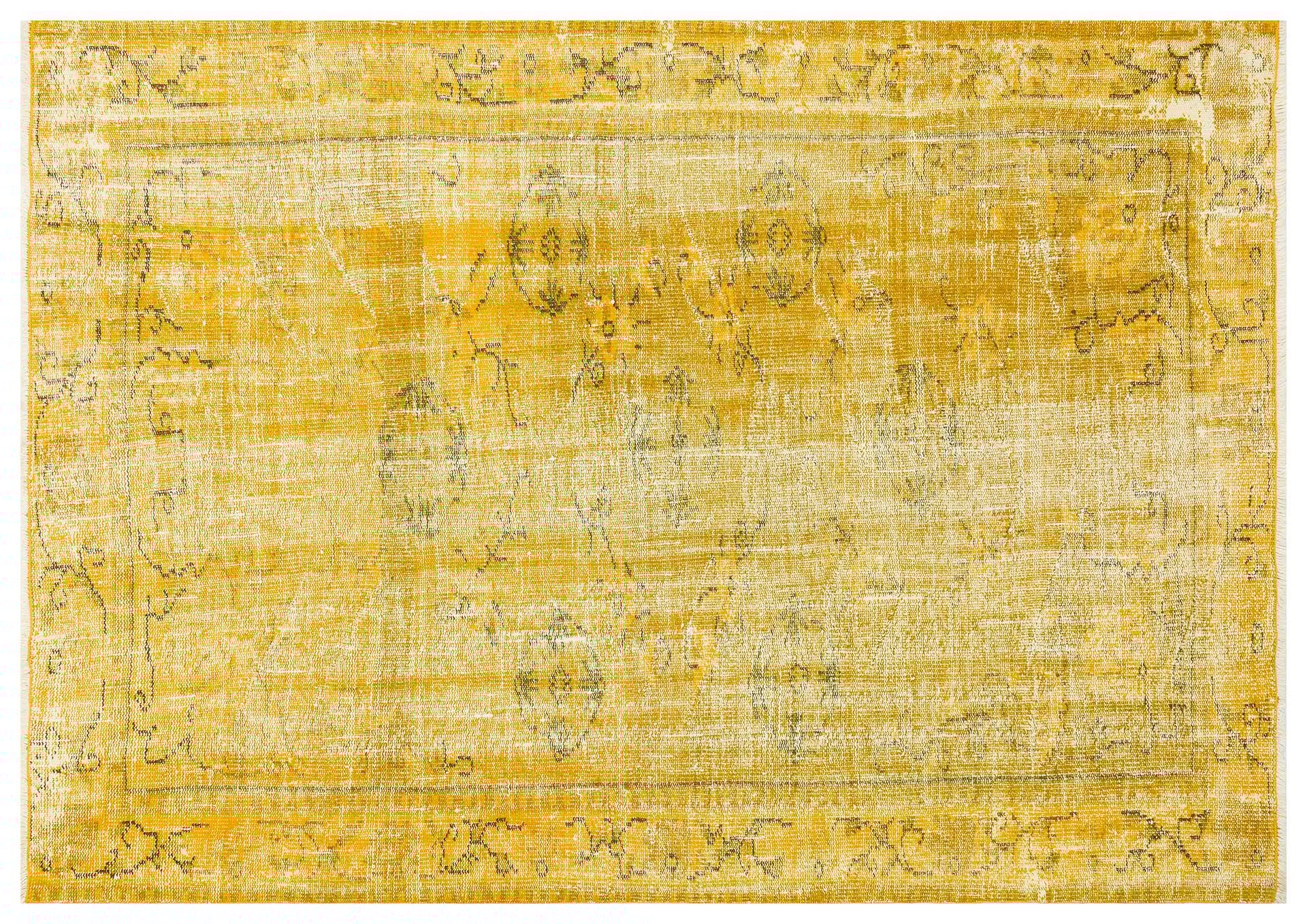SARİ SİYAH RENGİ GÖBEKLİ TÜRK EL DOKUMA VİNTAGE HALISI (VN - 11627)